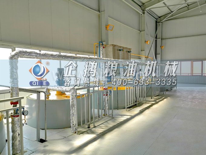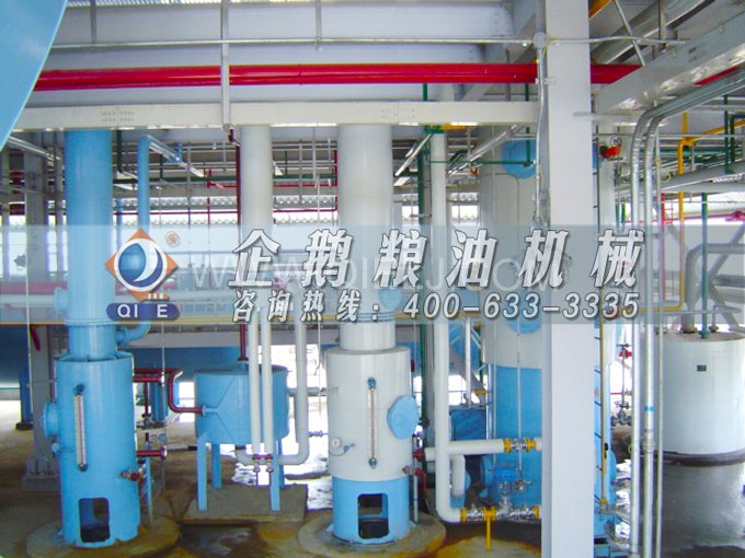 在浸出生產(chǎn)線中企鵝廠家為客戶配備的蒸發(fā)設(shè)備有蒸發(fā)器,汽提設(shè)備有汽提塔,還配備的有冷凝器、分水器以及尾氣回收裝置,迅速的將混合油中的溶劑分離并回收,做到低成本生產(chǎn)出高質(zhì)量的大豆油。此外為了分離毛油中的色素、磷脂以及游離脂肪酸,企鵝糧油機(jī)械廠還未油廠配備了才能成套的油脂精煉設(shè)備。